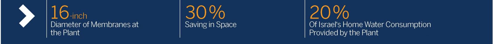 Furthermore, the innovative technology yields a saving in costs and energy consumption and also increases the plant’s daily water output that currently stands today at approximately 150 million cubic meters. The Sorek Desalination Plant has set a new standard of water prices in Israel, among the lowest in the world per unit of space. The plant supplies about 20 percent of the daily water consumption for home use in Israel and approximately 10 percent of the country’s total freshwater consumption.