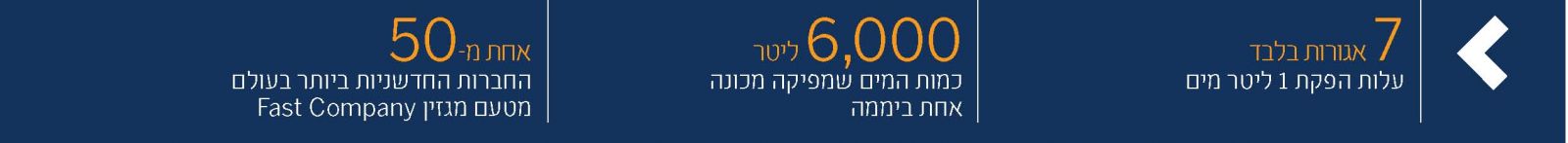 הפתרון של חברת Watergen פשוט ולכן גאוני: היא מייצרת כמות עצומה של מי שתייה צלולים מהאוויר, משאב טבע גלובלי שלעולם אינו מתייבש, תוך ניצול האנרגיה בצורה היעילה והזולה ביותר – עד ארבעה ליטר מים לכל קילוואט-שעה של חשמל. מכונה אחת של Watergen מסוגלת לייצר מי שתייה בכמות המספיקה לבית ספר, לבית חולים או למרכז קהילתי גדול, וכמה מכונות יכולות לייצר כמות מים המספיקה לכפר שלם ואפילו לעיר.